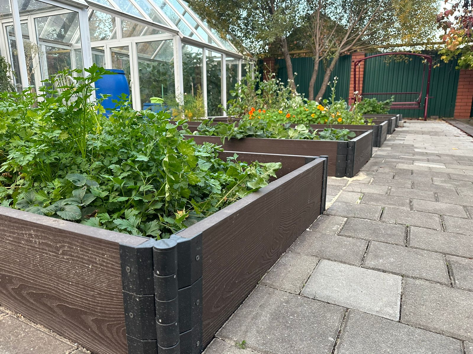 • Композитная доска экологична и не выделяет летучие вещества, поэтому безопасна для почвы и растений.