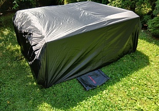 Летом в жаркую погоду мы советуем надевать чехол обратной строной, то есть серебристой подкладкой сверху. Но постоянно так делать не рекомендуется, чтобы не повредился гидроизоляционный скотч на швах.