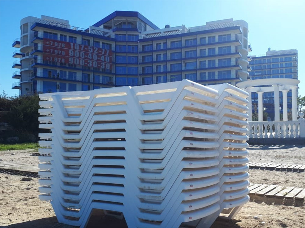 Сверхпрочные пластиковые шезлонги 4VILLA были поставлены на самый лучший пляж города Севастополя (Отель Аквамарин) в феврале 2018 года. По итогу первого сезона ВСЕ шезлонги остались целыми! Ни одного повреждения, которое могло бы помешать использовать шезлонг в следующем сезоне.