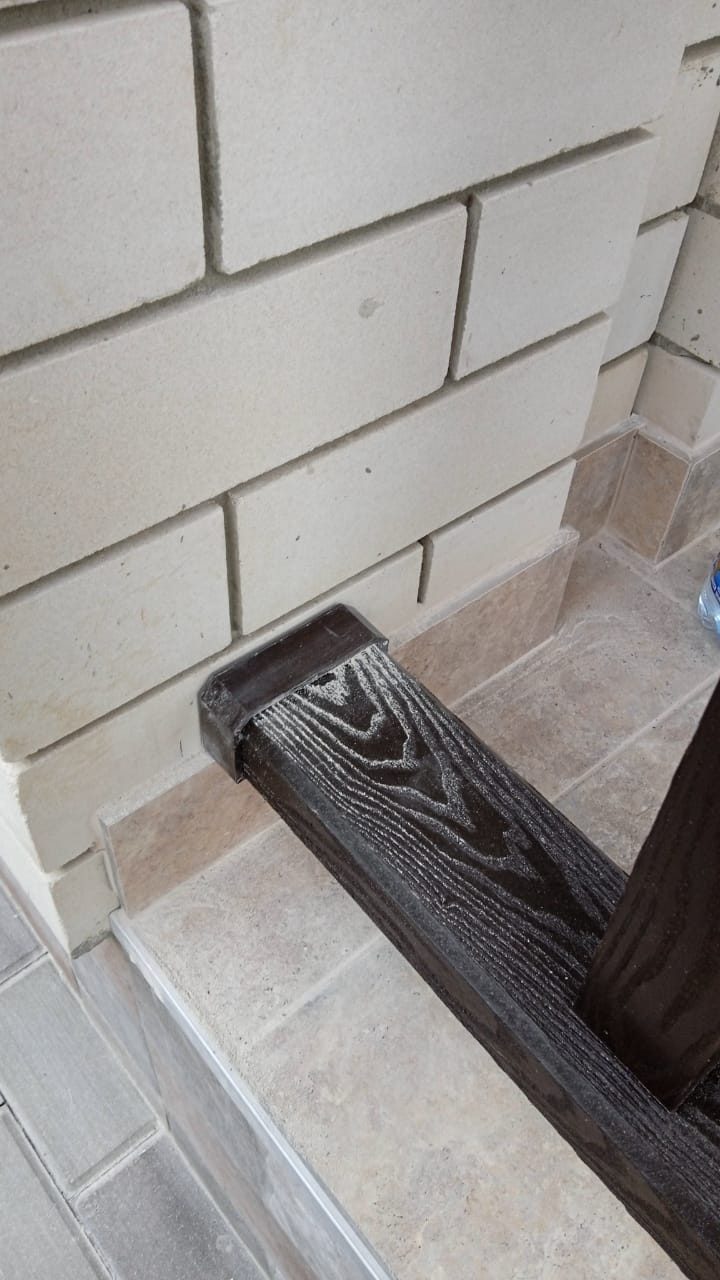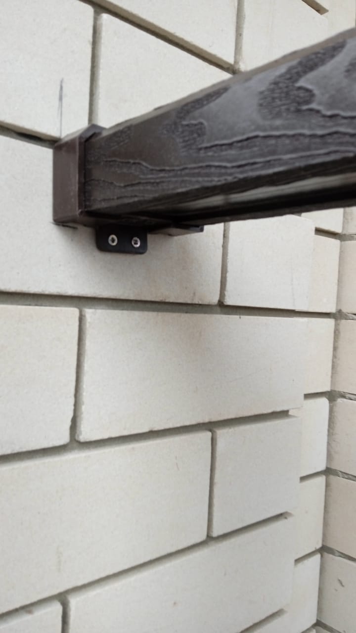 Перила пришлось пилить под углом и крепить без хомутов-креплений, так как клиент отказался покупать дорогие алюминиевые хомуты с шарнирами